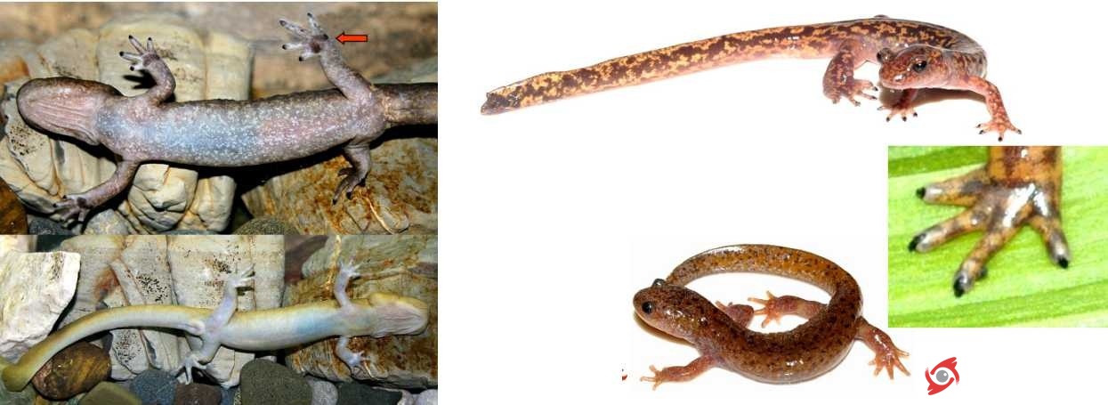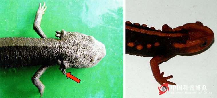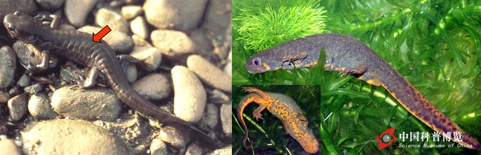 圖5. 龍洞山溪鯢Batrachuperus londongensis和爪鯢Onychodactylus fischeri