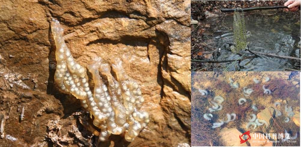 圖9.卵帶形式。普雄原鯢(Pseudohynobius (Protohynobius) puxiongensis;左),東北小鯢(Hynobius leechii;右上)掛榜山小鯢(Hynobius guabangshangensis;右下)