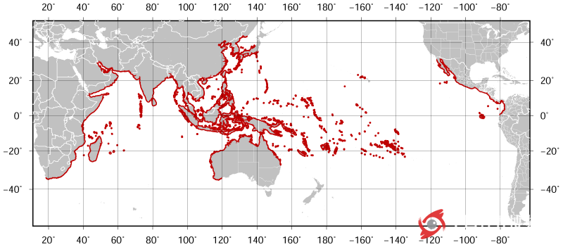 圖四:長吻海蛇的分布(圖片來自維基百科)