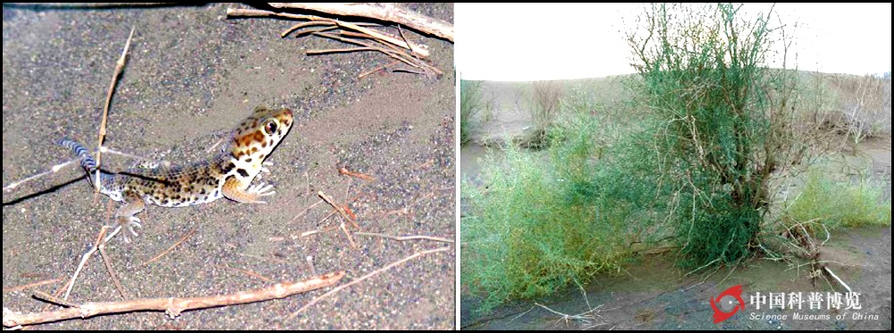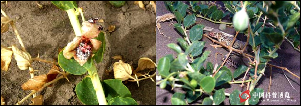 開裂的刺山柑果實(shí)和躲在刺山柑下面的吐魯番沙虎