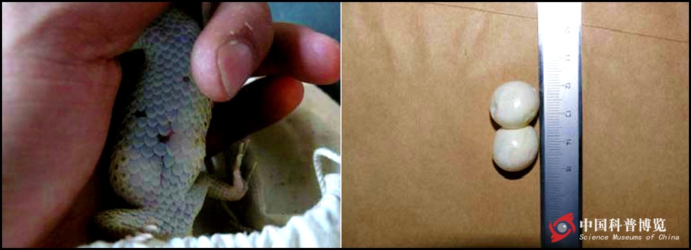 每年的3月底,吐魯番沙虎結(jié)束冬眠開始在地面覓食、繁殖。由于吐魯番的夏季漫長(zhǎng),吐魯番沙虎到了10月份左右才會(huì)冬眠。吐魯番沙虎在野外環(huán)境下每年可以繁殖1-2次,一般每次產(chǎn)2枚卵,由于懷卵數(shù)量少,懷卵的沙虎體型變化不大,但是翻過它的肚皮,會(huì)看到下腹部有兩個(gè)白色的圓球。懷孕2-3個(gè)月以后,沙虎媽媽會(huì)產(chǎn)下兩枚圓圓的蛋,帶有黏性的蛋會(huì)馬上附著在產(chǎn)卵地很難再被移動(dòng)。