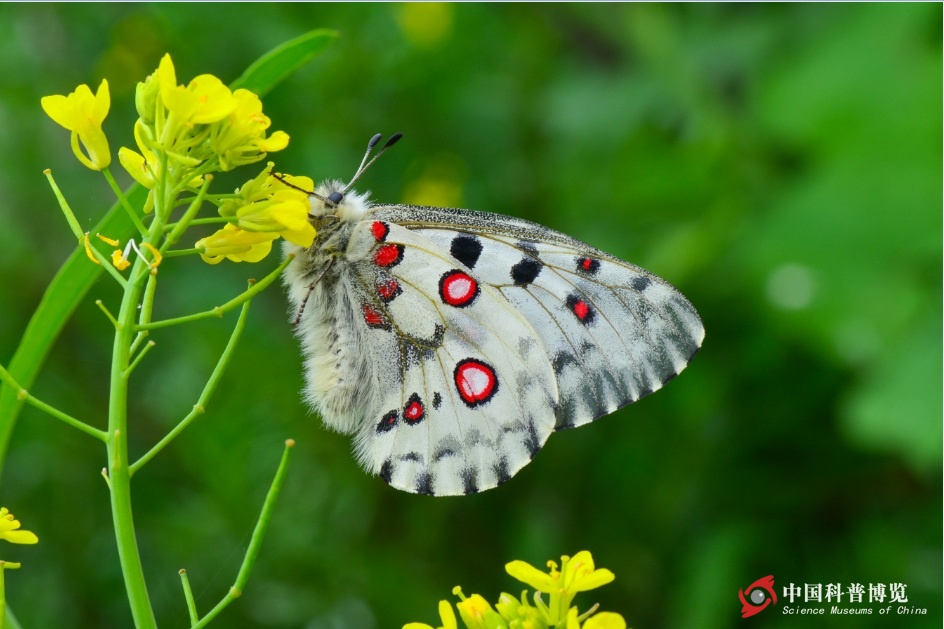 松山最早于1985年經(jīng)北京市政府批準(zhǔn)建立市級(jí)自然保護(hù)區(qū),于1986年7月晉升為國家級(jí)自然保護(hù)區(qū),屬森林和野生動(dòng)物類型的自然保護(hù)區(qū),主要保護(hù)對(duì)象為天然油松林和落葉闊葉次生林,是華北地區(qū)自然生態(tài)環(huán)境保存比較完好的山地生態(tài)系統(tǒng)。圖2 小紅珠絹蝶Parnassius nomion Fischer De Waldheim(劉博拍攝)