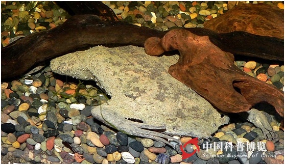 負子蟾,有一個超可愛的學名“Pipa pipa”,又被稱為蘇里南蟾蜍(Surinam Toad)。模式動物非洲爪蟾也是負子蟾的近親。成年負子蟾可以長到15~20cm,它們終生都不離開水,皮膚光滑,背腹扁平,身體呈流線型。負子蟾的前指纖長,呈星狀向外伸展,指端有細小的星狀附著器,有助于尋食;后腿強壯有力,趾間有蹼,非常善于游泳。負子蟾通常身體都略顯棕色或灰色,扁平的身體,很像一片枯樹葉。當一動不動地躲在水底的時候,它的擬態(tài)枯葉裝很難被敵人發(fā)現(xiàn)。