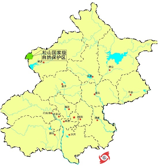 圖1. 松山自然保護區(qū)在北京的位置(圖片來自松山自然保護區(qū)官方網站)