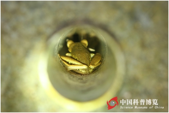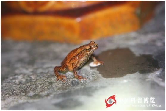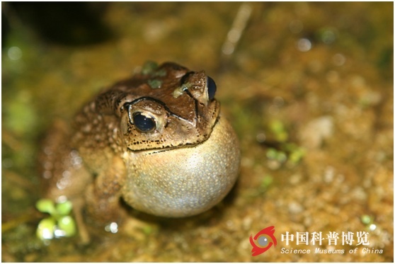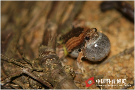 圖26.一只無聲囊泛樹蛙鉆進水管里鳴叫,聲音悠揚婉轉