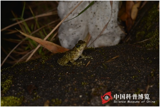圖7. 雄性海南擬髭蟾正準備過馬路,被逮個正著