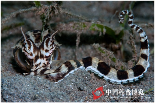 有的章魚不僅可以改變皮膚的顏色,甚至能通過改變身體形狀模仿多種動(dòng)物。擬態(tài)章魚住在光禿的海底泥沙中,周圍沒有供躲藏的珊瑚和水草。如果感受到有危險(xiǎn)征兆,它們會(huì)像比目魚一樣游泳。擬態(tài)章魚將所有的觸手排列到身后形成一個(gè)平面來模仿比目魚的樣子,因?yàn)樯響讯敬痰谋饶眶~讓許多掠食動(dòng)物敬而遠(yuǎn)之。如果這招沒用,擬態(tài)章魚會(huì)盡量撐開觸手模仿?lián)]舞著有毒脊柱的獅子魚,獅子魚可不是好惹的。假如遇到其他魚類前來找麻煩,擬態(tài)章魚就會(huì)把部分觸手伸進(jìn)自己的洞中,露在外面的觸手會(huì)不停地抖動(dòng),模仿海蛇的動(dòng)作,觸手上的斑紋看起來極像海蛇背上的條紋,海蛇的劇毒在大海中也算是家喻戶曉的。如果連模仿海蛇都嚇退不了對(duì)手,擬態(tài)章魚會(huì)將所有的觸手伸進(jìn)洞中模仿兇惡的蛇鰻。不得不承認(rèn)它們是模仿大師。