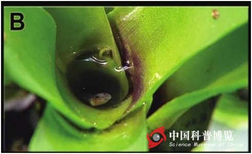 圖3. 鳳梨科植物頂端可以很好的續(xù)集水分為箭毒蛙蝌蚪提供生長的空間(圖片來自網(wǎng)絡(luò))