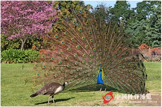 圖3.孔雀開屏——雄孔雀向雌孔雀展示自己漂亮的尾羽