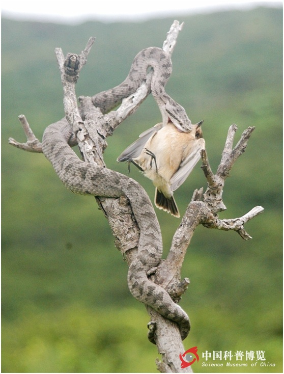 圖2. 蛇島蝮捕食鳥(niǎo)類(lèi) (圖片來(lái)源于網(wǎng)絡(luò))