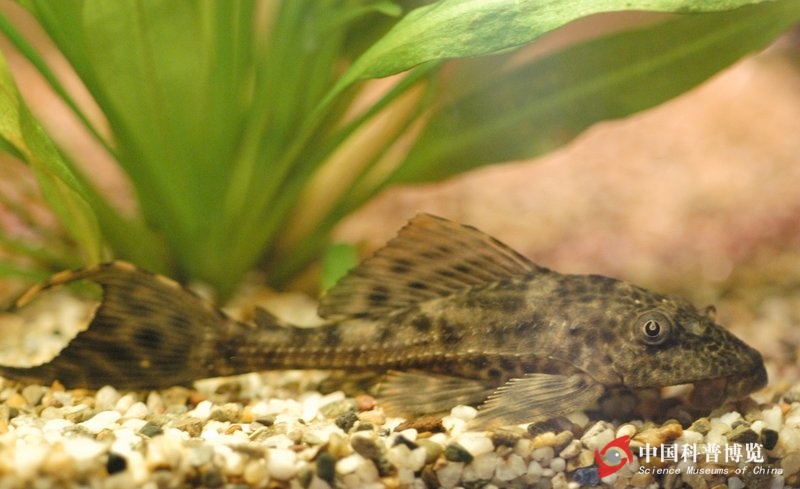 Hypostomus plecostomus),也叫琵琶魚、清道夫、清潔工魚,原產(chǎn)于南美洲亞馬遜河流域。成體長20~30 cm,體扁平,頭略開闊,背鰭高聳,尾細而長,胸鰭寬大似蒲扇。口唇發(fā)達如吸盤,體表粗糙,全身披盾鱗。體灰黑色或淡褐色,體表有黑白色花紋。飼養(yǎng)水溫22~28 ,餌料有水蚯蚓、紅蟲等。經(jīng)常吸食水族箱缸壁上的藻類,是常見的工具魚。事實上,下口鯰是一種偏肉食性的雜食魚類,藻類和水草不過是其部分飼料,其也常常吞食魚卵、刮食水生動物尸體等。水質(zhì)要求不嚴,喜夜間活動。繁殖力強,每次產(chǎn)卵300~500顆,孵化率幾乎達100%。