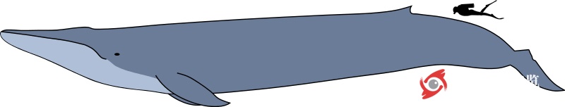 圖2. 藍(lán)鯨和人體型比較(圖片來自維基百科)
