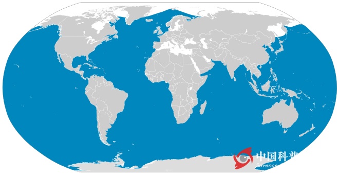 圖4. 藍(lán)鯨的全球分布(藍(lán)色為其分布海域;圖片來自維基百科)