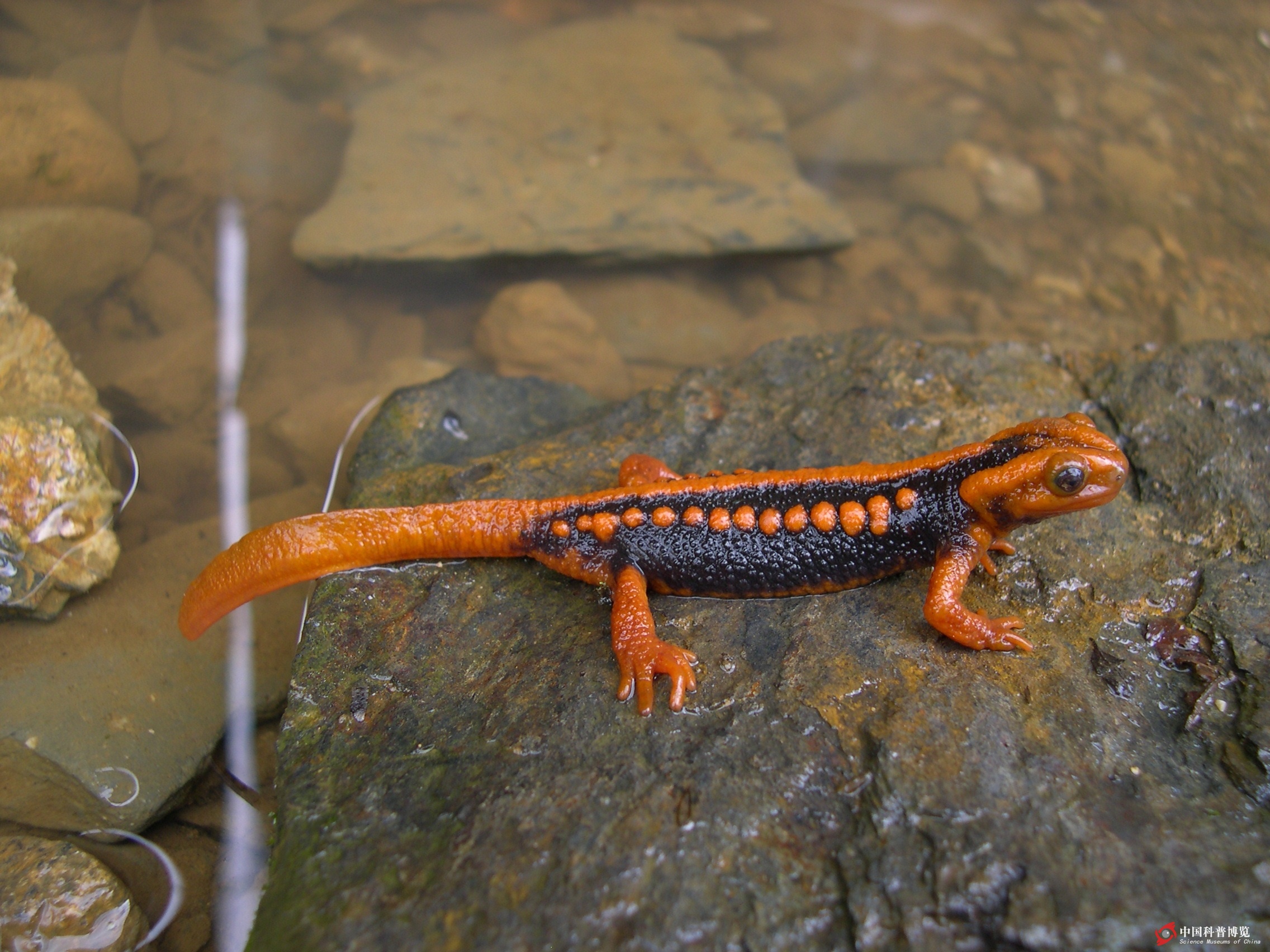 圖4. 紅瘰疣螈Tylototriton shanjing(云南),白天巡山時,發(fā)現(xiàn)其伏于水塘邊石塊上。(我的伙伴輝洪拍攝)