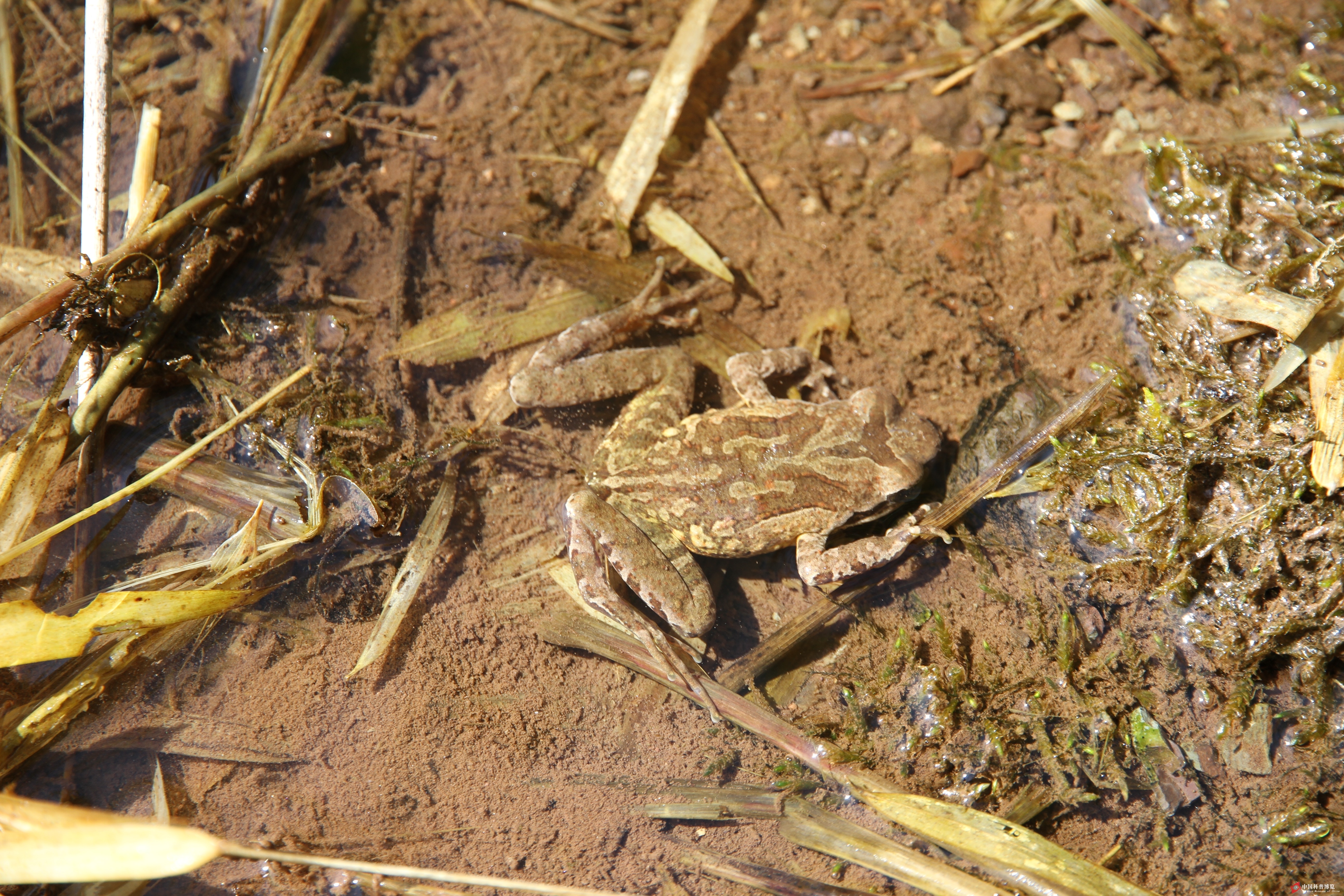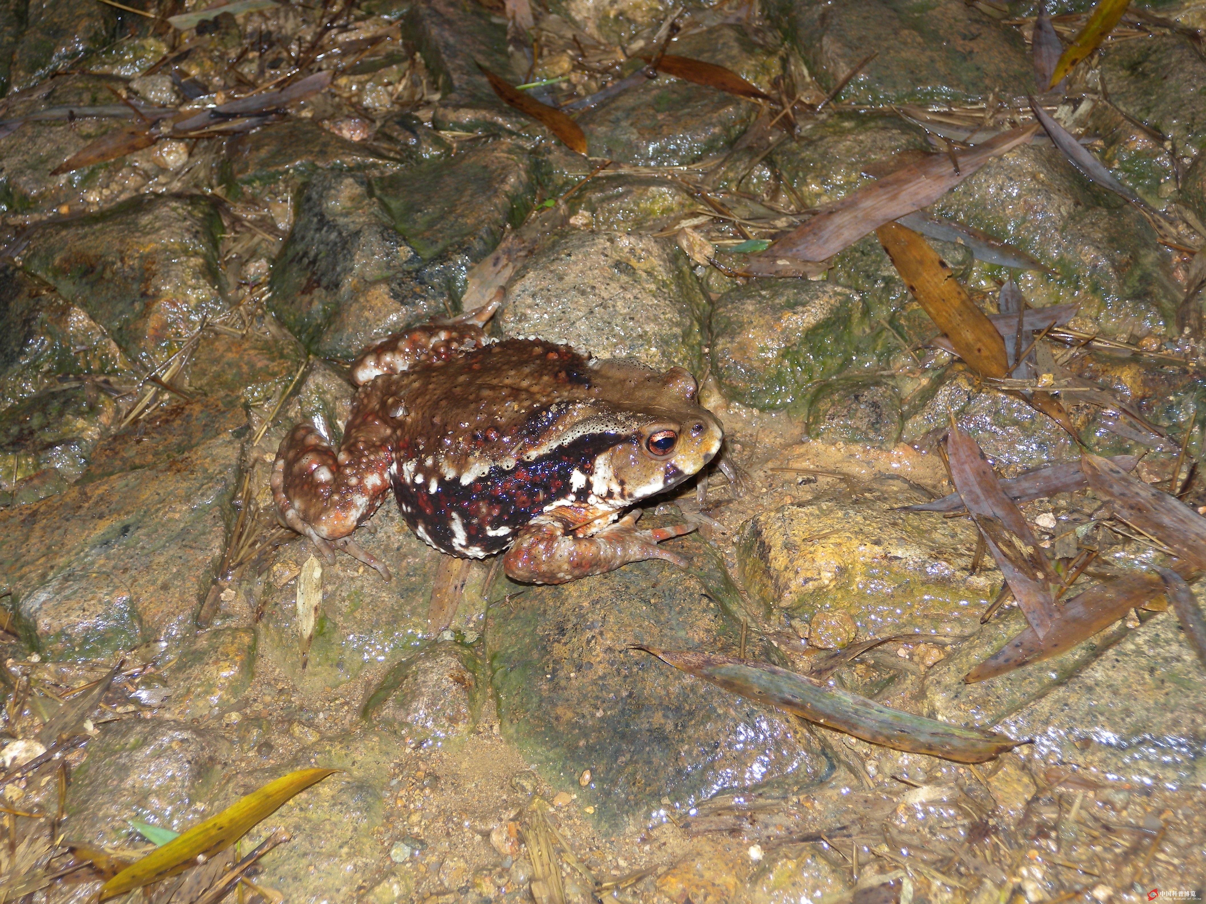 圖9. 水底的沙坪角蟾Megophrys shapingensis(四川涼山;石塊邊發(fā)現(xiàn)后進(jìn)入到水底躲藏)