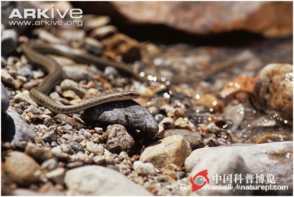 圖4. 在河灘上加溫的西藏溫泉蛇,Gavin Maxwell攝,自ARKive官網(wǎng)