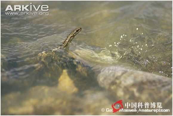 圖6. 河中游泳的西藏溫泉蛇,Gavin Maxwell攝,自ARKive官網(wǎng)