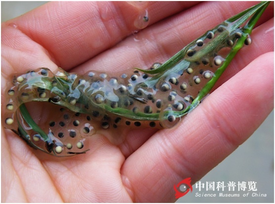 圖1. 2009.5.10采下粘在草上的秦嶺雨蛙卵,帶回實(shí)驗(yàn)室