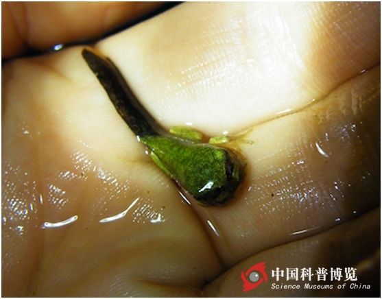 圖4. 2009.7.9兩個(gè)月后,蝌蚪們發(fā)育程度各不相同,比如這只,只長(zhǎng)出了小小的后肢芽
