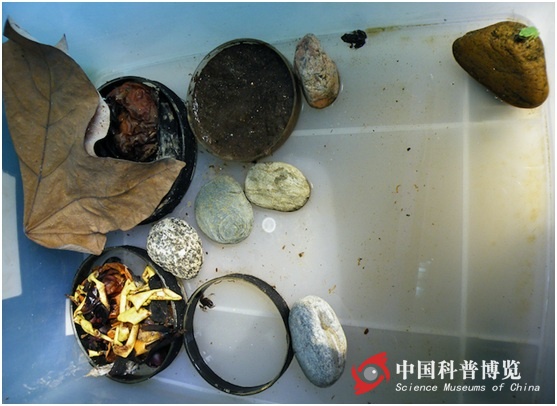 圖22. 2009.9.29這是它們居住的整理箱,里面有淺淺的水,一些石頭,和幾盤繁殖果蠅的腐敗水果,有時(shí)也喂它們適口的面包蟲幼蟲