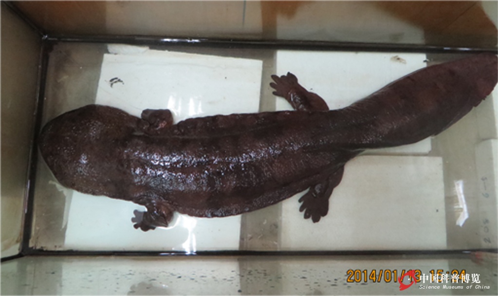 Andrias davidianus。大鯢的體型大,一般成體全長1m左右;大的可以超過2m,體重相當(dāng)于成年男子。目前活著的最大的大鯢應(yīng)該是張家界國家森林公園內(nèi)的“笨笨”,它全長1.8m,體重約65公斤。