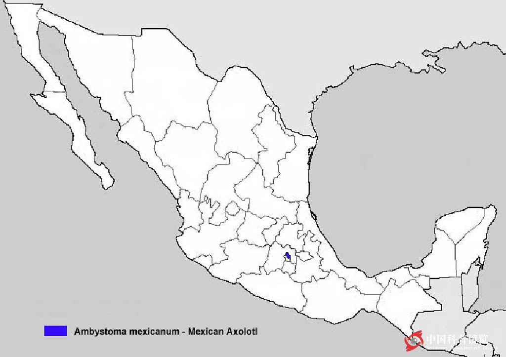 圖三:墨西哥鈍口螈如今的分布區(qū)域