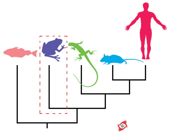 從直觀的角度上來說,兩棲動(dòng)物可以被看作是介于完全水生的魚類和陸生的羊膜動(dòng)物(包括爬行動(dòng)物、鳥類和哺乳動(dòng)物)之間的“過渡類型”,但是這種“過渡”卻不是簡(jiǎn)單的在形態(tài)、生活史、生態(tài)和行為特征之上的過渡。兩棲動(dòng)物的存在時(shí)間非常長(zhǎng),在將近3.5億年的演化歷史中,它們經(jīng)歷過顯著的適應(yīng)輻射過程,因此現(xiàn)生的兩棲動(dòng)物展現(xiàn)出了比其它脊椎動(dòng)物類群更加豐富的特征。