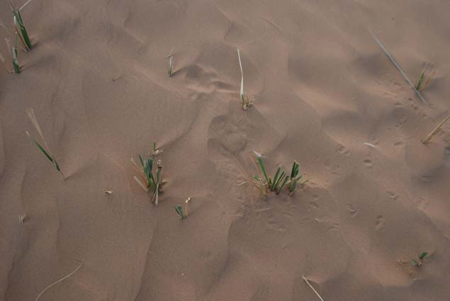 到了Dosang,我和同行的丹尼爾住在黑死病研究站內(nèi)。同住的還有一批人——一位研究沙蜥的老師帶著5個(gè)來參加夏日科學(xué)營的學(xué)生,還有2個(gè)研究沙漠昆蟲的研究生。在上午預(yù)調(diào)查的時(shí)候,我在沙丘中跟著到處奔跑的麻蜥,不小心迷失了方向。當(dāng)我奔上最高最大的沙丘想向同伴求助時(shí),聽見了“沙蜥老師”如帕瓦羅蒂般地吼著我的中文名。