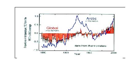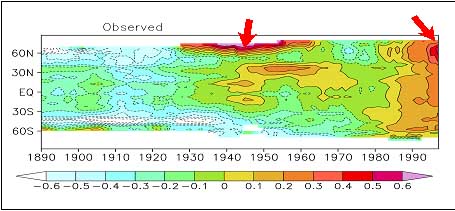 圖1 近百年來觀測(cè)到的全球溫度變化