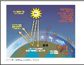 在干潔空氣的易變成分中,有一些被稱為溫室氣體的氣體。這是一些大氣中自然或人為產(chǎn)生的氣體成分,雖它們?cè)诖髿庵械暮繕O少,大部分被稱為痕量氣體;溫室氣體能像溫室玻璃或塑料大棚的薄膜一樣,透過太陽短波輻射和吸收地面長波輻射,這就像給地球裹了一條被子,起到了保溫作用,從而使地球變暖(圖5)。