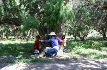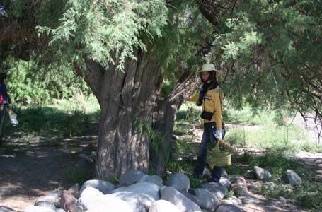 這些野生古檉柳樹(shù)不僅可作為青海植物界的名片、代表、特色和品牌,而且完全可以作為中國(guó)生物多樣性的驕傲和世界自然遺產(chǎn)的標(biāo)本。在以生態(tài)立省的青海和國(guó)家新一輪“西部大開(kāi)發(fā)”戰(zhàn)略啟動(dòng)的今天,屬于江河源生態(tài)保護(hù)區(qū)一部分的這片林地更應(yīng)得到高規(guī)格的有效保護(hù),而且當(dāng)?shù)厝罕娨灿羞@種保護(hù)意識(shí)和愿望,而他們已往的保護(hù)行為和今天的保護(hù)理由甚至令我們汗顏。為此,我們專(zhuān)程請(qǐng)來(lái)業(yè)已退休多年的我國(guó)檉柳科植物專(zhuān)家——中國(guó)科學(xué)院新疆生態(tài)與地理研究所的劉銘庭研究員,并會(huì)同中科院西高所的周興民研究員和青海大學(xué)的史惠蘭講師等人于8月13日至14日在林區(qū)現(xiàn)場(chǎng)進(jìn)行了相關(guān)考察和分類(lèi)學(xué)鑒定,最終確定這片野生古檉柳為甘蒙檉柳(Tamarix austromongolica Nakai.)。該種植物是我國(guó)的特有種,分布于黃河流域。考察研究的結(jié)果還顯示,這片古檉柳林的發(fā)現(xiàn),以野生甘蒙檉柳古樹(shù)的身份重新確定了檉柳屬植物不僅可以是灌木或小喬木,而且可以長(zhǎng)成粗壯的喬木。這不僅為我國(guó),而且為世界檉柳科植物研究資料的寶庫(kù)中增添了幾個(gè)“世界之最”:樹(shù)齡最長(zhǎng)(約300至400余年,堪稱(chēng)檉柳樹(shù)王);胸高莖圍最粗(376厘米);在我國(guó)野生分布區(qū)中海拔最高(2700米)。這些都是檉柳屬植物的世界奇跡。南橘北枳,任何植物的生長(zhǎng)都需要一定的土壤和環(huán)境條件。是什么樣的特殊環(huán)境和立地條件成就了這一奇跡,還需進(jìn)一步研究。