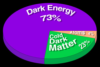 1998年至今,更精確的Ia型超新星觀測結(jié)果證實了帕爾馬特等人的發(fā)現(xiàn),而來自宇宙微波背景各向異性和宇宙大尺度結(jié)構(gòu)的觀測結(jié)果也令人信服地證實了 ≈0.7和 m≈0.3的事實。這表明宇宙空間中不僅充斥著神秘的“暗能量”,而且聚集了大量不發(fā)光的“暗物質(zhì)”。暗能量與暗物質(zhì)的本質(zhì)究竟是什么呢?