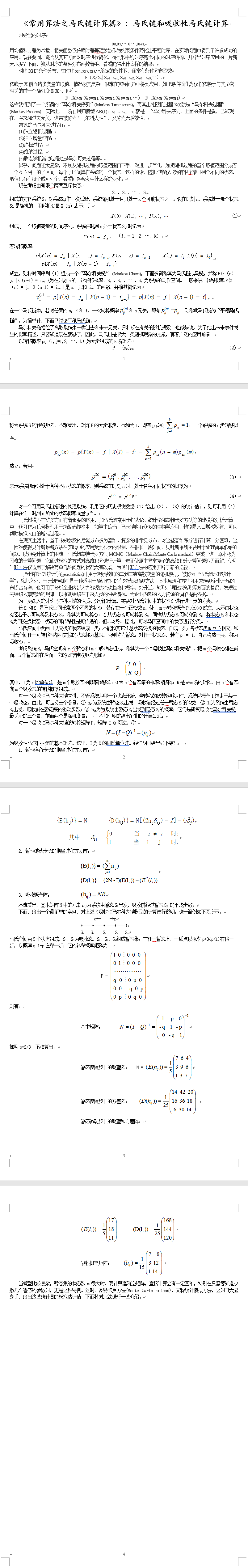 常用算法之馬氏鏈計(jì)算篇