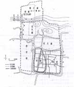 揚(yáng)州的居住區(qū),由許多庭堂式的民居組成,多成長條形。住宅內(nèi)部的布置因大門的朝向不同而各異,舊城區(qū)道路仍以十字形干道為主,形成方格網(wǎng)道路系統(tǒng)。新城區(qū)道路系統(tǒng)則成不規(guī)則形。