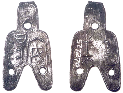 圓肩圓檔圓足布,鑄于戰(zhàn)國晚期,主要流行在山西汾水流域。在圓足布的首與兩足端各鑄一孔,稱三孔布或三孔圓足布,可用繩索穿系,利于商旅往來攜帶。三孔布面文所記地名,集中于山西、河北二省,應(yīng)是趙國或中山國的貨幣!鞍碴枴比撞,形同圓肩圓檔圓足布。布首與兩足各有一圓孔。面文為“安陽”,背文為“十二朱”,另背首上端有數(shù)字符號“十二”,傳世三孔布,既保留了三晉布幣的形態(tài),又以秦國通行的銖兩記重,面文所記地名,多為趙地。趙國有兩處“安陽”。西“安陽”在今內(nèi)蒙古五原縣以東、陰山以南一帶;東“安陽”在今河北定襄縣界。此枚三孔布,鑄于東“安陽”的可能性較大。“安陽”三孔布,在中國貨幣史上占有一定地位,傳世稀少。