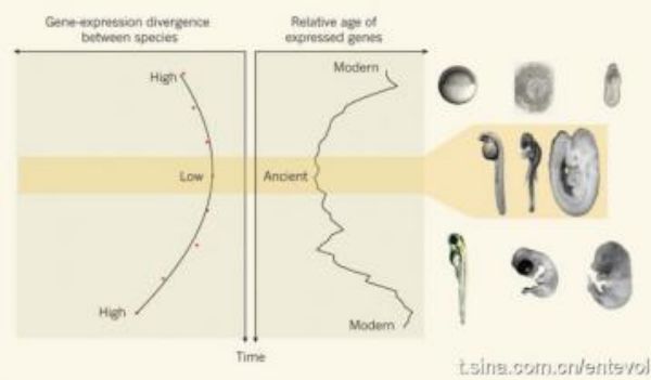 已有研究人員通過(guò)比較不同物種的發(fā)育調(diào)控基因后發(fā)現(xiàn),較早出現(xiàn)的基因確實(shí)更為相似,而較晚出現(xiàn)的基因則更為不同。