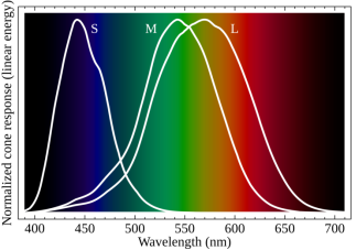 我們?nèi)祟惸茏R別各種各樣的顏色,是因為我們的眼睛里有3種類型的視錐細(xì)胞,分別對黃綠、綠色、藍(lán)紫色的光敏感。它們接收到的光信號匯聚到腦中,就有了五彩斑斕的世界。