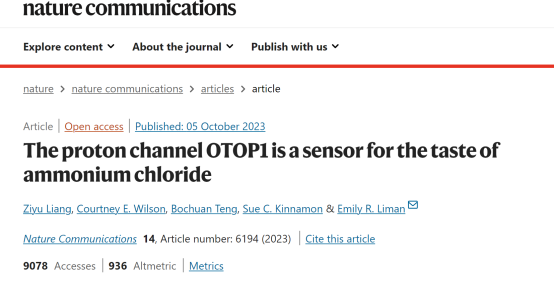 7.Liang et al. The proton channel OTOP1 is a sensor for the taste of ammonium chloride. Nature Communications. 2023, 14, 6194.