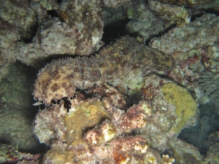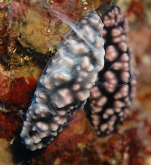 其貌不揚(yáng)的成體格皮氏海參(中間)