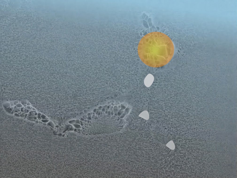 圖片為高溫合金組織,包含基體組織、碳化物和共晶組織,基體組織宛如浩瀚的天空,其中左下共晶組織猶如一只展翅翱翔的雄鷹,右側(cè)的碳化物比作白云,右上的共晶組織象征太陽;鷹擊長空,氣沖霄漢,顯現(xiàn)出代代科研人員的豪情萬丈、雄心壯志,以勇攀高峰、敢為人先的創(chuàng)新精神在各自領(lǐng)域孜孜求索。