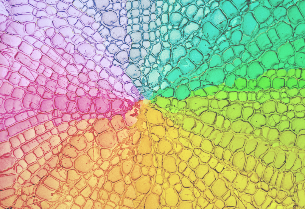 明膠單向冷凍后的切面在掃描電子顯微鏡下呈現(xiàn)出放射狀的規(guī)則排列,猶如一塊精心拼湊排布的彩色玻璃,讓人不禁感嘆于化學的精巧美妙。