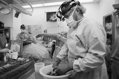 20237月,Robert Montgomery在紐約準備將豬腎移植到一名腦死亡男子體內(nèi)。圖片來源:Shelby Lum