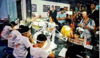“超聲三寶”帶領大家探秘聽不到的超聲波。超聲波是指頻率大于20kHz的聲波??蒲腥藛T會邀請小朋友投放眼鏡到超聲清洗儀,進行超聲清洗,講解原理??蒲腥藛T邀請小朋友打開超聲霧化器開關,來產(chǎn)生水霧,通過調(diào)整超聲換能器的深度,觀察水霧變化??蒲腥藛T邀請小朋友將水和油倒入紙杯中,觀察不相溶情況,再利用超聲乳化儀將水油相溶,講解聲空化原理。通過“超聲三寶”,使得參觀者對超聲波有進一步的認識。