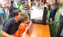 石墨烯電池是由離子液體電解液和石墨烯電極共同組成的新型電池??蒲腥藛T將邀請現(xiàn)場小朋友親手制作一枚這樣的小電池。小觀眾們可將石墨烯作為電極,滴上幾滴離子液體,再依次放上纖維素隔膜、電解液、電極……一系列操作后,這樣一款簡易石墨烯電池就做好了,制作完畢將連上LED小燈泡,親手點亮燈泡。