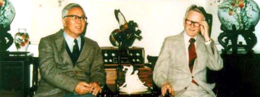 華羅庚與他的老朋友著名數(shù)學(xué)家徐賢修在一起。 |