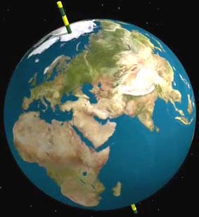 地球每天繞著一條軸心自轉(zhuǎn)一圈。這條軸心連接了各稱為北極與南極的兩點(diǎn)。每年,地球也會(huì)繞著太陽(yáng)公轉(zhuǎn)一圈,但喜帕恰斯和托勒密都不知道這個(gè)事實(shí);他們還以為是太陽(yáng)繞行著地球。一直到哥白尼所處的十六世紀(jì)時(shí),人們才開始了解原來(lái)是地球正在繞行著太陽(yáng)。
