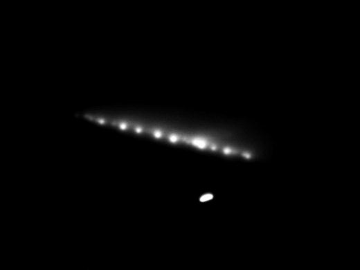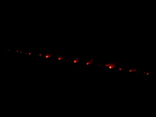 1994年5月從哈勃太空望遠(yuǎn)鏡拍下的“蘇梅克-利維9號(hào)”彗星 |