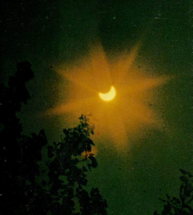 我們知道,月球是圍繞地球轉動的,地球又帶著月球一起繞著太陽公轉,當月球運行到太陽和地球之間,三者差不多成一直線時,月影擋住了太陽,于是就發(fā)生了日食。月影有本影、偽本影(本影的延長部分)和半影之分。在月亮本影掃過的地方,那里太陽光全部被遮住,所看到的是日全食;在半影掃過的地方,月球僅遮住日面的一部分,這時看到的是日偏食。有時,月球本影達不到地面,它延伸出的偽本影掃到地面,此時太陽中央的絕大部分被遮住,在周圍留有一圈明亮的光環(huán),這就是日環(huán)食。天文學家稱環(huán)食和全食為中心食。中心食的過程中必然會發(fā)生日偏食。