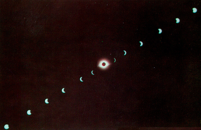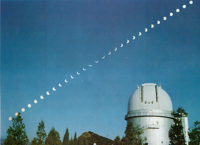 本次日全食的全食帶在我國境內(nèi)的位置如圖所示。其中四條平行直線表示4個不同時刻月影中心位置,它們的見食情況列于圖后附表。這次日全食過程中,月球本影最先與地面接觸發(fā)生在我國新疆最北部的阿爾泰地區(qū)與哈薩克共和國交界處,當(dāng)時日出不久,太陽高度只有8度。然后,月影掃過蒙古共和國和俄羅斯,大約在北京時間9時07分進(jìn)入我國內(nèi)蒙古的滿歸地區(qū),9時08分進(jìn)入黑龍江漠河地區(qū),9時12分離開我國出境。因此,在我國境內(nèi)的最佳觀測時間和地點應(yīng)是9時08分~9時ll分在黑龍江漠河地區(qū),當(dāng)時太陽高度約21.5度,日全食持續(xù)時間為2分46秒。可見日全食的可觀測條件要比l968年9月22日在新疆和l980年2月16日在云南的日全食優(yōu)越得多。新疆日全食的太陽高度只有5度,全食時間只有0.3分鐘;云南日全食時太陽高至也只有9度,全食時間不過l.7分鐘。