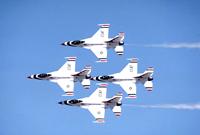 如果說到世界上最為有名的特技飛行表演隊(duì),當(dāng)然是非美國(guó)空軍的“雷鳥”飛行表演隊(duì)莫屬。 在當(dāng)今的特技飛行表演隊(duì)中,“雷鳥”的表演場(chǎng)次最多,飛行難度最高,表演項(xiàng)目最全,出訪的國(guó)家也最多。建隊(duì)近50年來,“雷鳥”的航跡遍及美國(guó)本土50個(gè)州及海外50多個(gè)國(guó)家,累計(jì)表演了近3000場(chǎng)次,觀眾人數(shù)達(dá)2億多人,贏得了眾多的稱贊和榮譽(yù),并多次獲得國(guó)際航空界的最高獎(jiǎng)賞和所到國(guó)家及地區(qū)給予的各種榮譽(yù)獎(jiǎng)。
